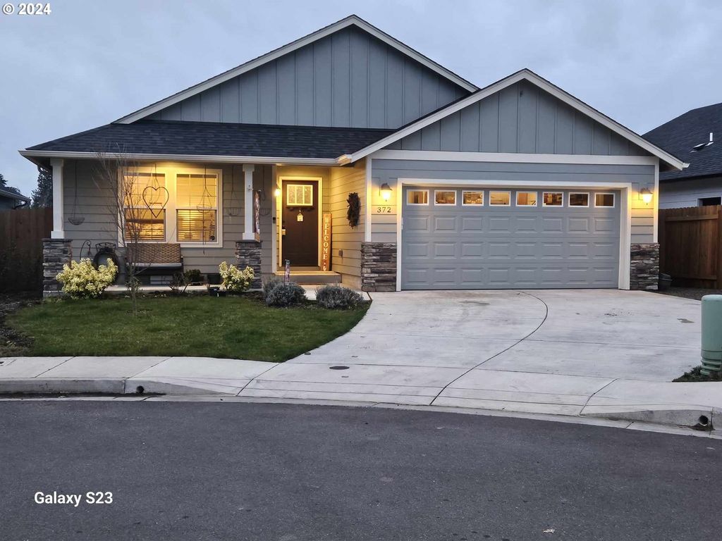 OPEN HOUSE: SUNDAY MARCH 24 1:00-3:00PM. Come see this gem of a house located in a quiet, newer Creswell neighborhood. The open-concept kitchen, dining and living area provides a cozy setting for relaxing or entertaining. A sliding glass door leads from the dining area onto the 10' x 24' covered patio which extends your living space and allows for year-round outdoor gatherings in a quiet, peaceful setting. The patio overlooks the fully-fenced back yard, where you will find raised garden beds, grapevines, a fig tree, and a wood trellis with kiwi plants. Both the front and back yards have underground sprinklers and mature landscaping, providing a low-maintenance backdrop for this delightful home. The kitchen has stone counters, plenty of cabinet space, and a walk-in pantry. All kitchen appliances are stainless steel, including the 5-burner gas stove. The large primary bedroom has a walk-in closet and ensuite with dual sinks and walk-in shower. The house is wired for a generator. Built in 2020, this move-in ready home is conveniently located just 10 minutes from Eugene.