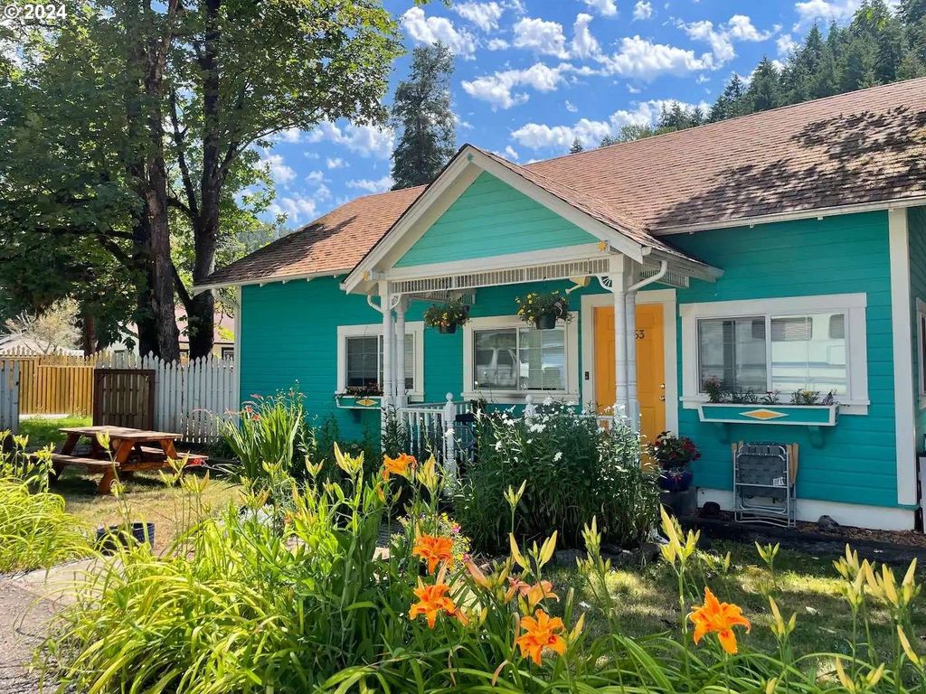 Welcome to the Westfir Bungalow, full of character and charm inside and out. A unique opportunity to own this successful Airbnb in the heart of coveted Westfir. A truly unmatched location, at the start of an Oregon Scenic Byway and just a stone's throw from the famous Office Covered Bridge, Westfir Lodge, and perched just above a fork of the Willamette River. Resting at the base of the world-famous Alpine mountain bike trail, and endless outdoor activities. The home has been completely overhauled recently with a newer roof, fresh interior paint throughout, updated electrical, new heat/cooling, new appliances, newer windows, and so much more. Timeless interior finishes include gorgeous woodworking, beadboard and wainscoting, 10-foot ceilings, original five-panel doors, arched doorways, and refinished original fir floors. Spacious .27 acre flat lot with new fenced front yard, bike/tool shed, covered front porch, and large parking pad for RVs. A turn-key opportunity, move-in ready with adventure just out the front door.