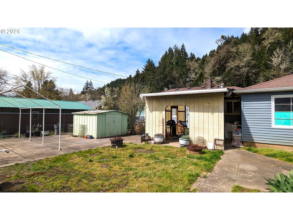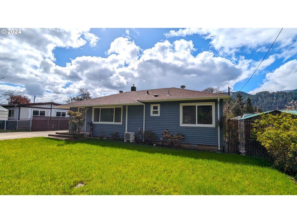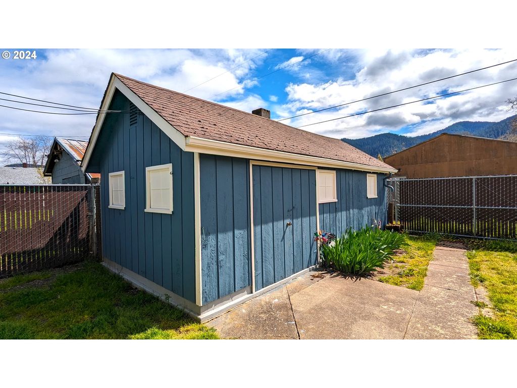 Very sweet, ranch-style cottage near the heart of Oakridge. No neighbors across the street! Updated flooring includes laminate and slate. Vintage kitchen includes all appliances (excluding washer/dryer on patio). Tons of storage and custom built-in drawers/cupboards in every room. Vinyl, insulated windows and ductless heat pump. Laundry/mud room opens to enclosed, concrete patio. Fenced backyard with raised beds, fruit trees, and metal tool shed. Detached workshop (more built-ins!) with attic storage. Backyard is fully fenced with alley access and rolling gate. Generous, concrete pad w metal frame for covered parking or RV/boat storage. There's much more than meets the eye on this one!