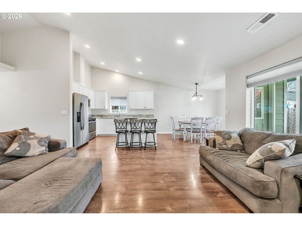 Built in 2020, this well-designed home offers a functional floor plan and modern finishes throughout. The layout provides an open living space that flows easily into the kitchen and dining areas, creating a practical setup for everyday living and entertaining. The bedrooms are well positioned for privacy, including a spacious primary suite with its own bathroom and walk in closet. Step outside to the backyard patio, partially covered for year-round use and equipped with gas hookups for your BBQ. Convenient access to local schools, parks, and I-5.