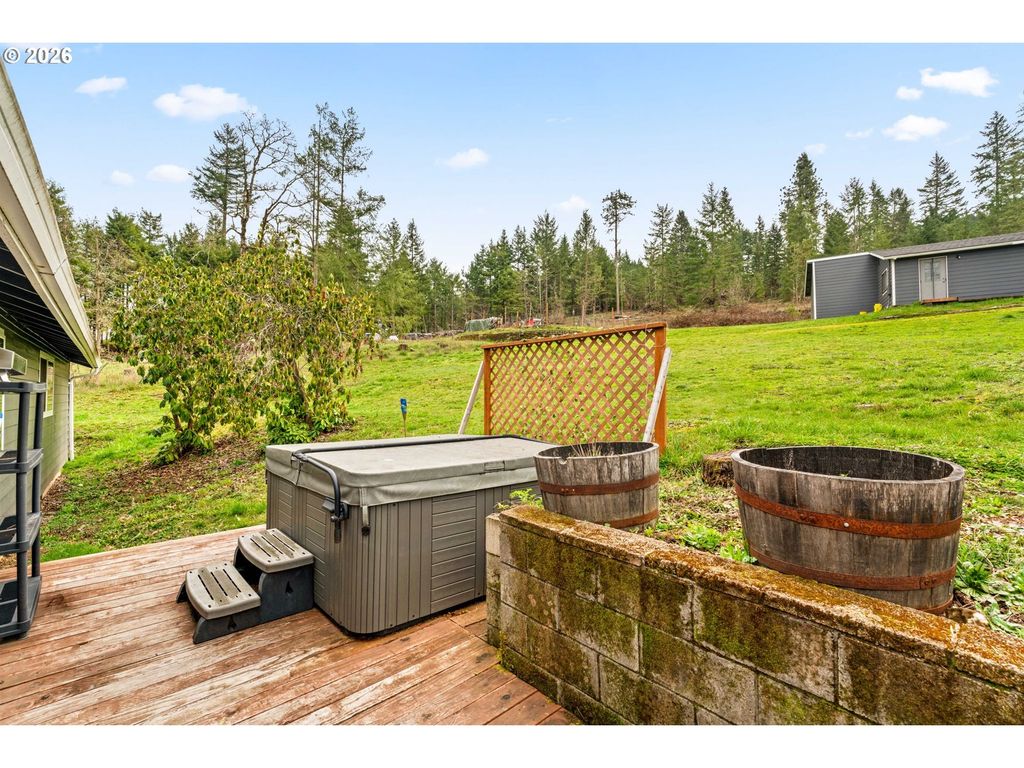 Peaceful single level Ranch on 4.98 Acres! Nestled on a spacious property with forest deferral and exceptional views, this home offers a serene, sustainable living experience. Imagine cooking large meals in a massive, light filled kitchen featuring ample storage, granite and stainless steel appliances. Inviting living room offers expansive views and ambiance with the wood burning fireplace. Soak away your stress in the hot tub while the deer and wildlife entertain you! This property is an outdoor oasis, with multiple decks, garden areas, and 2 tool sheds. Experience year round comfort with a forced air heat pump to keep warm in winter and cool in the summer. Power outages a worry? This home has been professionally equipped to run your own generator with a 50 amp hookup. If multigenerational living is desired, check out the spacious bonus cottage featuring 2 bedrooms, 1 bath, full kitchen and laundry! Other recent upgrades include new roofs, decks, septic system, well pump, paint and much more! You have finally found that one-level, multigenerational 4 bedroom home on acreage, with all the recent costly upgrades done! Look for updated photos of interior on 3/2! *OPEN HOUSE Sunday 3/1 from 12-3!*