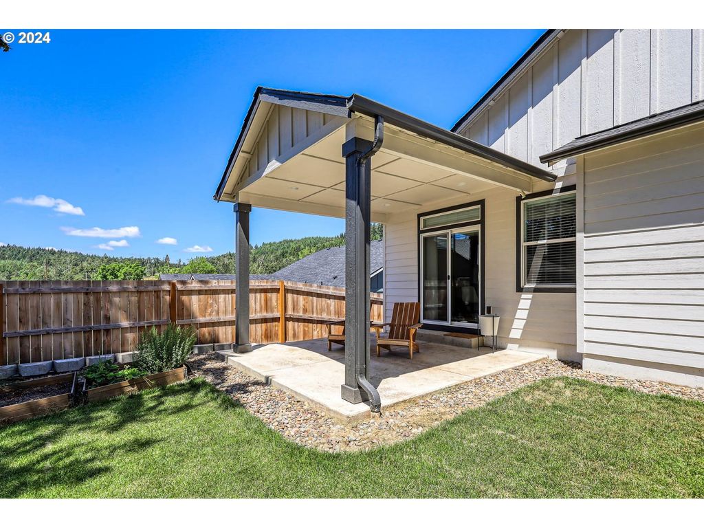 Welcome to your dream retreat just one mile from Dexter Lake! This exquisite single-story, 3 bedroom, 2 bathroom craftsman-style home is nestled in a serene, wooded, mountainside setting, offering a perfect blend of tranquility and modern luxury. Step inside to discover upgrades throughout this meticulously maintained home. The kitchen and baths feature, stainless steel appliances, stunning quartz countertops, complemented by beautiful engineered wood flooring that runs seamlessly throughout the living spaces. Upgraded hardware and lighting fixtures add a touch of elegance, while custom-fit window coverings ensure both style and privacy. The large primary suite is a true sanctuary, boasting a dual vanity, walk in shower and a generous walk-in closet. Covered patio and the low-maintenance landscaping ensures you have more time to enjoy the beautiful surroundings. Outdoor enthusiasts will love the proximity to Dexter Lake, where fishing, kayaking, and boating opportunities await. This home offers the perfect blend of outdoor adventure and comfortable living.