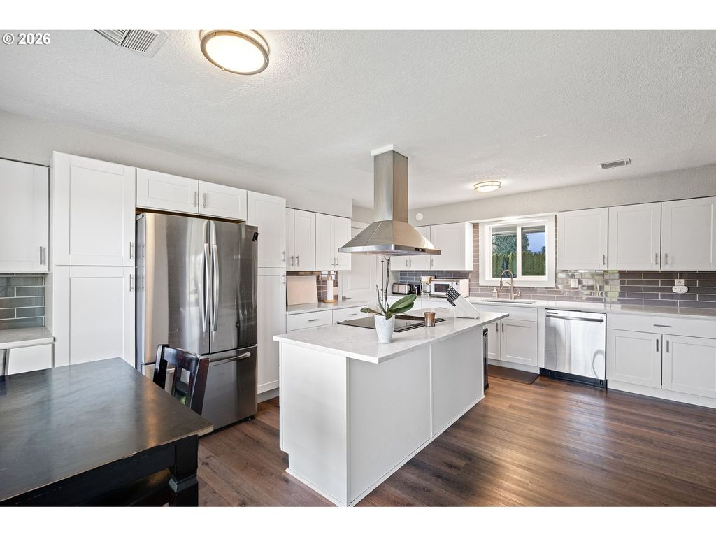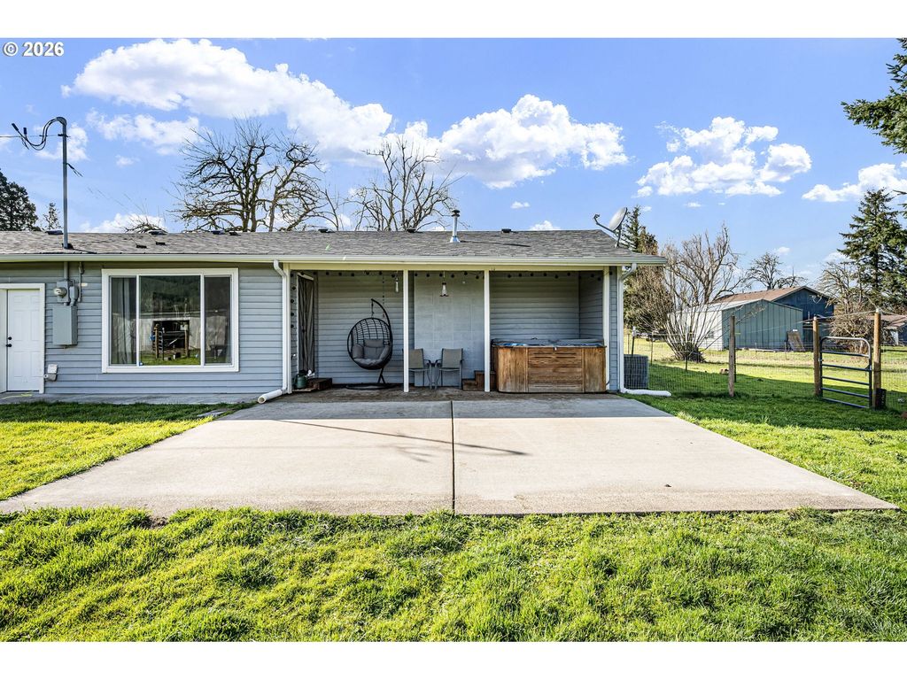 Beautifully remodeled country property on nearly two usable acres, offering modern updates with classic farmhouse charm. Situated in a quiet country neighborhood just outside Creswell city limits, this home provides peaceful rural living with convenient access to town. Remodeled in 2023, the home features newer stainless steel appliances, newer kitchen cabinetry with ample storage, and updated finishes throughout. Large windows fill the home with natural light and showcase views of the valley's tree-covered hills. Laundry is conveniently located just outside the door in the garage. Major system upgrades include a new cement septic system with leach field, RV sewer hookup, upgraded well with Kinetico water filtration, new fencing, wood pellet stove and an ADT security system. The usable land offers space for animals, gardening, or outdoor enjoyment. Move-in ready country living with modern reliability.