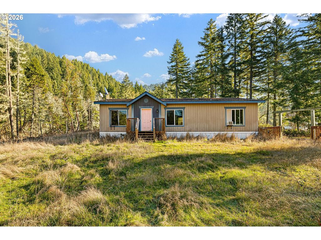 You could go completely off grid or just disappear from society on this secluded 80 acres with 2 houses. The main house is stick built on 78 acres and a manufactured home on another 2 acres. Being almost 2 miles past the closest home these homes are a perfect preppers paradise. A hunting guide could live in one home and rent the other to hunters, Air b&b or just have a good ol family compound. The main house is a custom built 3 bed, 2 bath with a huge upstairs office and tons of character! The MH is a 3/2 that was placed in 2015. The two share a well and each have their own septic. At an elevation of 1720' both homes are nestled just under Eagles Rest, which is an owl preserve. Eagle creek flows year round cutting through the back of the property. There is another seasonal creek or two as well as a couple ponds. In addition there is a large shop with a couple rooms in it, a small barn, an old chicken coup and a huge old garden. The driveway is maintained by BLM. Timber was harvested in 1993 only taking timber more than 6" at 30'. It was reseeded then and has plenty of merchantable timber. Come get lost in reality at the end of Lost Creek rd! The homes show some deferred maintenance but with a little love this will be a dream come true property. Buyer to do their own due diligence.