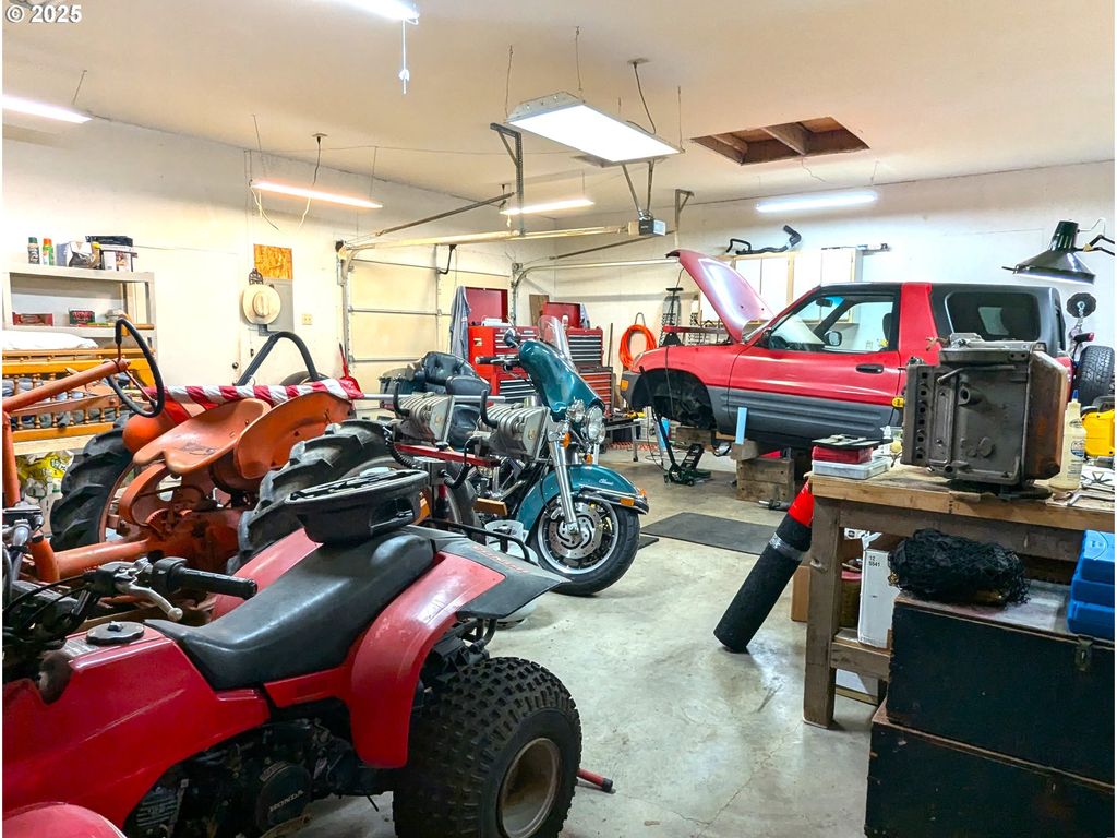 Looking for a nice, big shop with a very sweet house? Hobbyist's dream, 1472 sq feet, finished and insulated shop has a motorized garage door, 10' ceilings, benches, tables, and poured concrete floor. Hardi siding and metal roof. Separate large office and storage rooms. Exterior access to separate, upper enclosed studio loft area above shop via stairs (sq footage not included in calculation, do not access prior to accepted offer). Firewood storage. Home is clean and cozy and has been thoughtfully updated with LVP flooring, newer ductless heat pump (2024), subway tile, planked walls, updated bath, metal roof and new exterior paint. Intact vintage touches include an original built-in linen closet in the hall, wood-burning fireplace, kitchen hardware, and 5-panel doors. Front picture window. Slider from the dining room to the covered patio and backyard area. Double carport at the oversized driveway plus a second carport with access from Klohn Rd. Generous, level, corner lot is partially fenced and has a front retaining wall. Fantastic opportunity.
