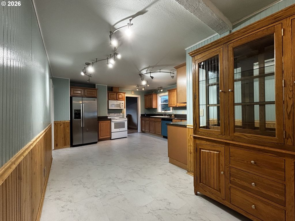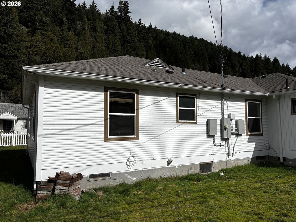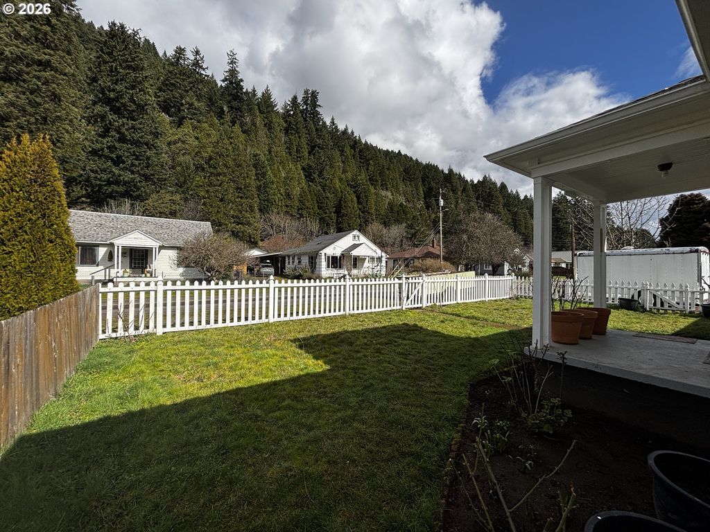 More than meets the eye! Remodeled Mid-Century 1-level, 3/5 BR, 2-3/4 BA home w/finished attic located in quiet Hemlock SD w/short stroll to N. Fork Willamette River & other fun outdoor excursions. Enjoy top to bottom upgrades including new roof, electric, ceiling fan/lights, heat, appliance, paint & flooring. Spacious, fully applianced country kitchen w/upscale soft-close cabinetry w/pull-outs & new vinyl plank flooring, multi-zonal LED drop lighting, stainless S/S fridge, sink w/disposal & windowed view of mtn. range, newer FS range/BI microwave & New stainless dishwasher. Rich & flowing interior features refinished original fir floors in LR, hall & BR's, Mudroom w/full bank storage/pantry & deep sink. MBR Suite w/new carpet & ceiling fan/light has large closet w/BI's & French doors to new S. facing porch. Master BA w/custom rock & tile roll-in shower w/dbl. heads, ext.toilet & vanity. Hallway w/built-in's & pull down ladder to finished attic w/carpet, outlets, light & vent/fan. Hall BA w/tub & tile shower, spacious vanity, storage cabinet & penny tile flooring. 2 addl BR's w/hardwood floors, ceil'g fan/lights, new heaters & ample storage space. Picket fenced frontage & paved driveway w/carport off mudroom & attached 480 SF shop/garage w/deep sink, cabinetry ready to hang, 3/4 Bathroom w/new ext. door AND 2 rear (bed/study) rooms (one w/closet & ext. door) provides option for 2nd living quarters/AirBNB. Fully fenced back yard w/covered patio w/tool room (perfect for BBQ's) is a gardener's delight w/raised beds & safe play space for kids & pets. A charming backdrop of this enchanting neighborhood is the SP railroad w/"quite zone" crossing & N. Fork FS road that winds along the N. Fork River to Jasper/Lowell. 2 blocks from the best fishing & swimming rocks, or drop the kayak & roll down scenic waters to Black Canyon campgrounds! Alpine Trailhead at the infamous Office Bridge & Aufderheide Bi-way are nearby scenic attractions calling your name!