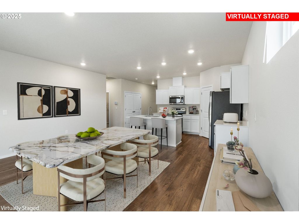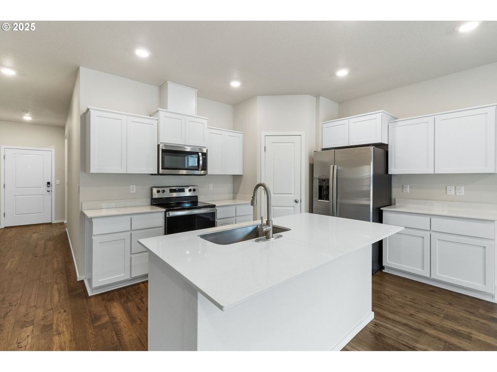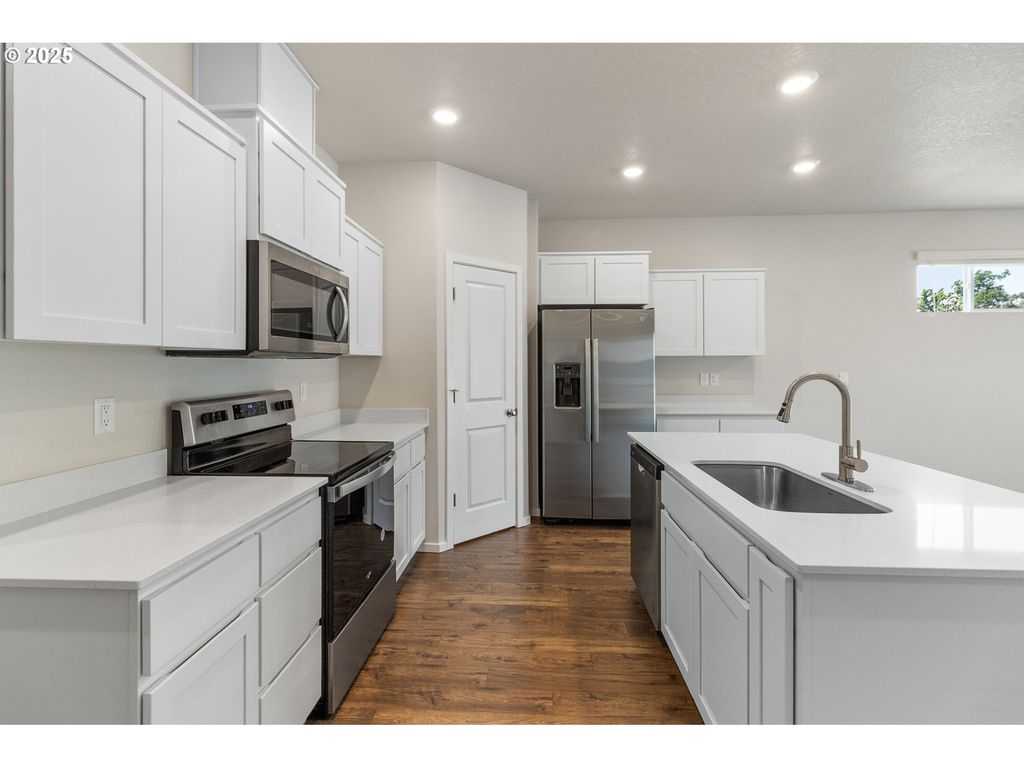 This 100% MOVE-IN READY, SPOTLESS home in the desirable Sunset View community offers modern comfort, thoughtful upgrades, and a transferrable builder warranty. In like-new condition, the home features an open-concept layout with 4 bedrooms, 2 baths, and a stylish kitchen complete with quartz countertops and island, walk-in pantry, and stainless steel appliances; all flowing into a bright living area with a cozy electric fireplace and durable laminate flooring. The finished, painted garage includes a door opener and wireless keypad. Outside, the fully fenced backyard has been upgraded with grass that can be enjoyed from the covered patio. Smart Home technology, energy-efficient systems, including a 65+ gallon heat pump water heater, and window blinds throughout add convenience, style, function and value. All this just minutes from Dexter Reservoir, offering easy access to boating, fishing, and year-round outdoor recreation.