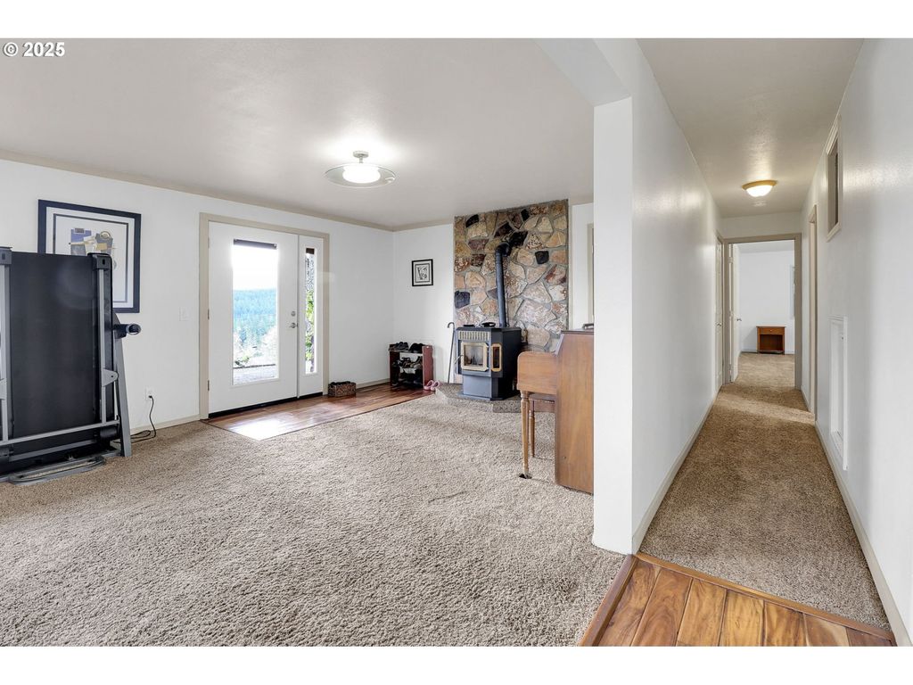 Final days on market-Domt miss out on this Stunning Custom-Built Home with Breathtaking Mountain Views!This exceptional custom-designed residence beautifully showcases magnificent mountain landscapes. It boasts a tailored upper Trex deck, ideal for grilling and enjoying picturesque sunrises. Featuring four bedrooms and two bathrooms, this home encompasses 2,522 square feet. Key Features: A durable metal roof installed in 2018 with an impressive 50-year lifespan, An expansive 1,200-square-foot shop (48x26) equipped with: Concrete flooring 12-foot ceilings, 220 amp service Pre-wiring for a 50-amp generator. Modern leach fields, Two pellet stoves, Zonal heating, A 120-gallon propane tank. The kitchen is tastefully designed with Cherry cabinets, Tile flooring, Granite countertops, built-in propane stove, dishwasher, An eating bar, refrigerator, featuring a water and ice dispenser, A double oven Stainless-steel appliances. The dining area includes a built-in hutch and a sliding door that leads to the deck. The bathrooms are elegantly finished with tile, wood flooring, and granite accents. The primary bedroom offers a walk-in closet and a sliding door that opens to the deck. Additional Highlights are the Vaulted ceilings and vinyl windows. Two AC window units located upstairs. A delightful deck area complete with seating and a hot tub, newly graveled road and driveway. This home holds incredible potential for dual living arrangements!