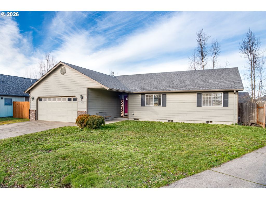 Well-maintained single-level home offering 3 bedrooms, 2 baths, and 1,379 sq ft of comfortable living space. The open great-room design features a vaulted ceiling, laminate flooring, a ceiling fan, and a skylight that fills the space with natural light. The country kitchen includes a pantry and flows seamlessly into the main living area"”ideal for everyday living and entertaining. The primary bedroom has its own private bath. Additional highlights include central air conditioning, a 2-car garage, and a fully fenced backyard with a deck, raised garden beds, and a tool shed"”perfect for outdoor enjoyment and storage. Enjoy the best of small-town living in Creswell"”where quiet neighborhoods, open skies, and outdoor recreation meet everyday convenience. Spend your days golfing at Emerald Valley, walking in local parks, or exploring the Coast Fork of the Willamette River, all while staying just a short drive from Eugene via easy I-5 access.
